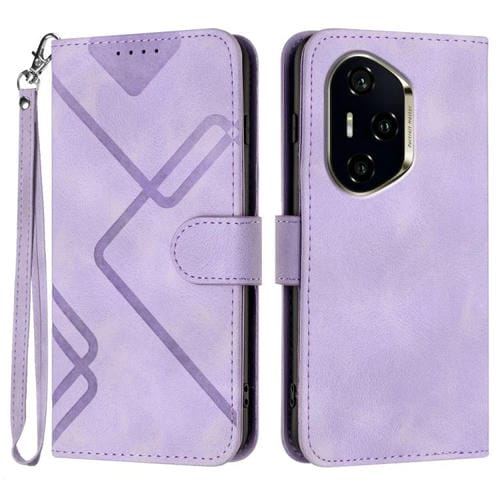 Funda de Cuero para Honor 300 Pro y Honor 300 Ultra con Diseño de Líneas y Tacto Suave (Morado Claro)