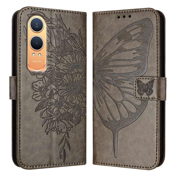 Funda de Cuero para OnePlus Nord CE4 Lite con Diseño Mariposa en Relieve (Gris)