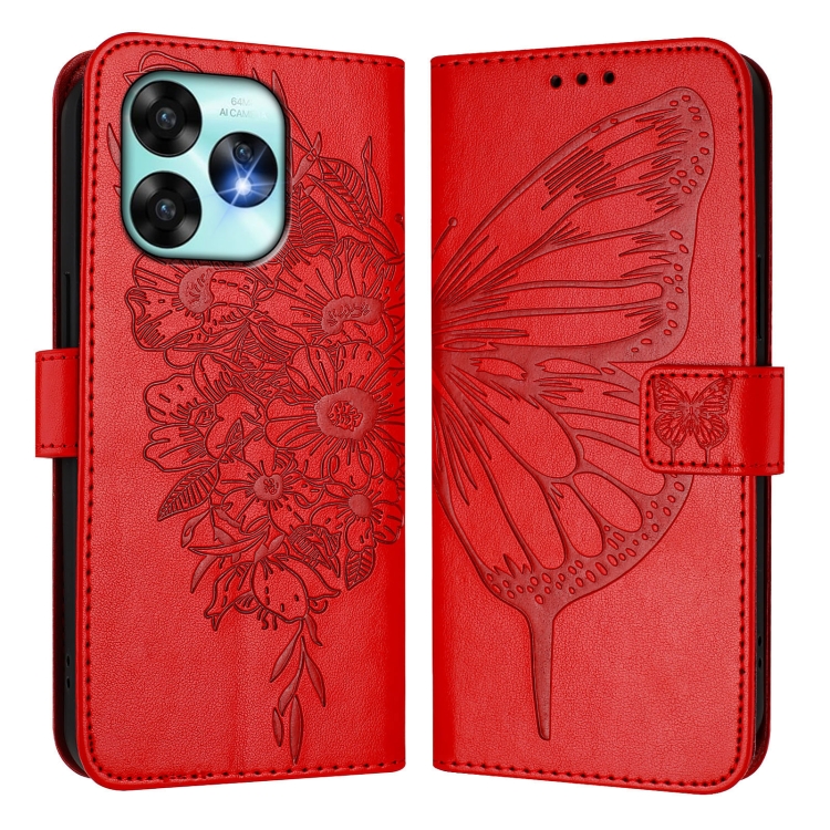 Funda de Cuero para Teléfono Umidigi A15/A15C/A15T con Diseño de Mariposa En Relieve (Rojo)