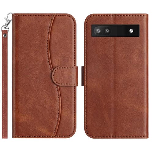 Funda de Cuero con Doble Pliegue en Forma de S para Google Pixel 6A (Café)