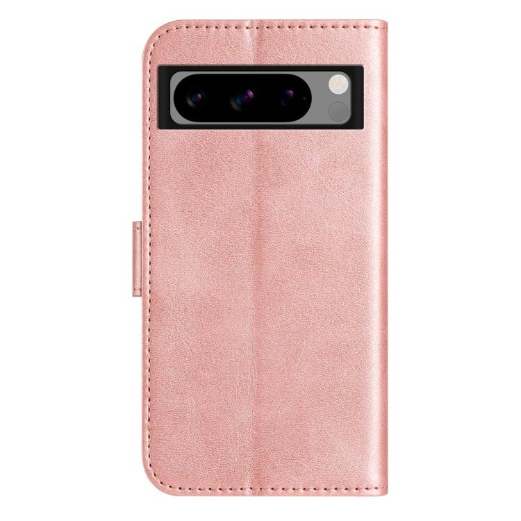 Funda de Cuero con Doble Pliegue en Forma de S para Google Pixel 8 Pro (Oro Rosa)