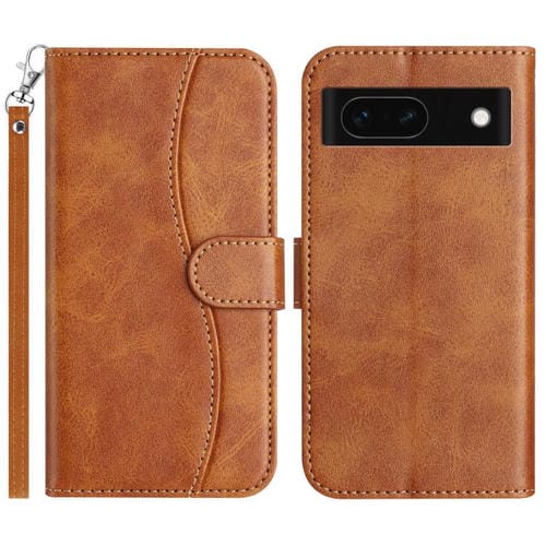 Funda de Cuero con Doble Pliegue en Forma de S para Google Pixel 8A (Marrón)
