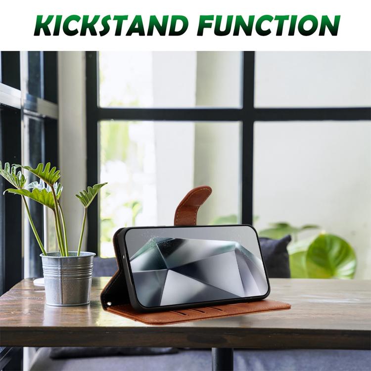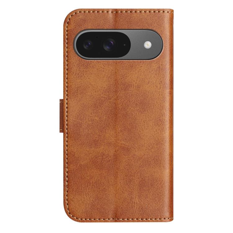 Funda de Cuero con Doble Pliegue en Forma de S para Google Pixel 9 y 9 Pro (Marrón)