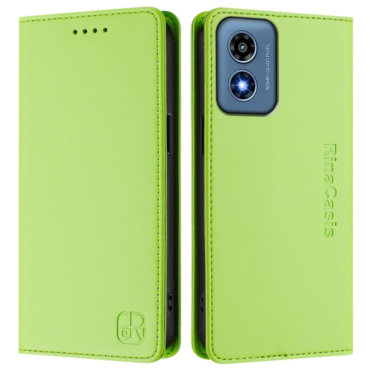 Funda de Cuero para Motorola Moto G Play 2024 y Moto G 5G 2024 Rc01 con Doble Pliegue y Succión Magnética (Verde Hierba)
