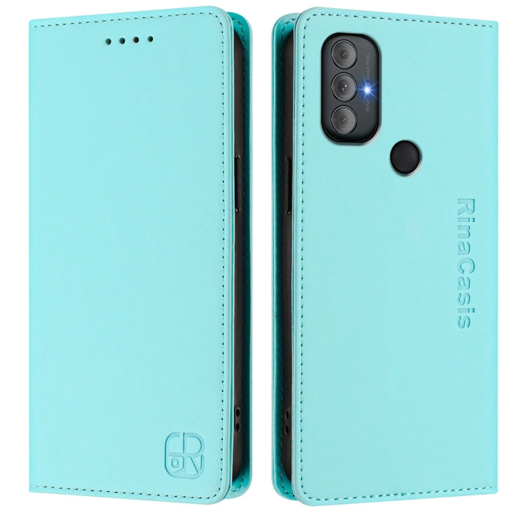 Funda de Cuero con Doble Pliegue y Succión Magnética para Motorola Moto G Power 2022 Rc01 (Verde Menta)