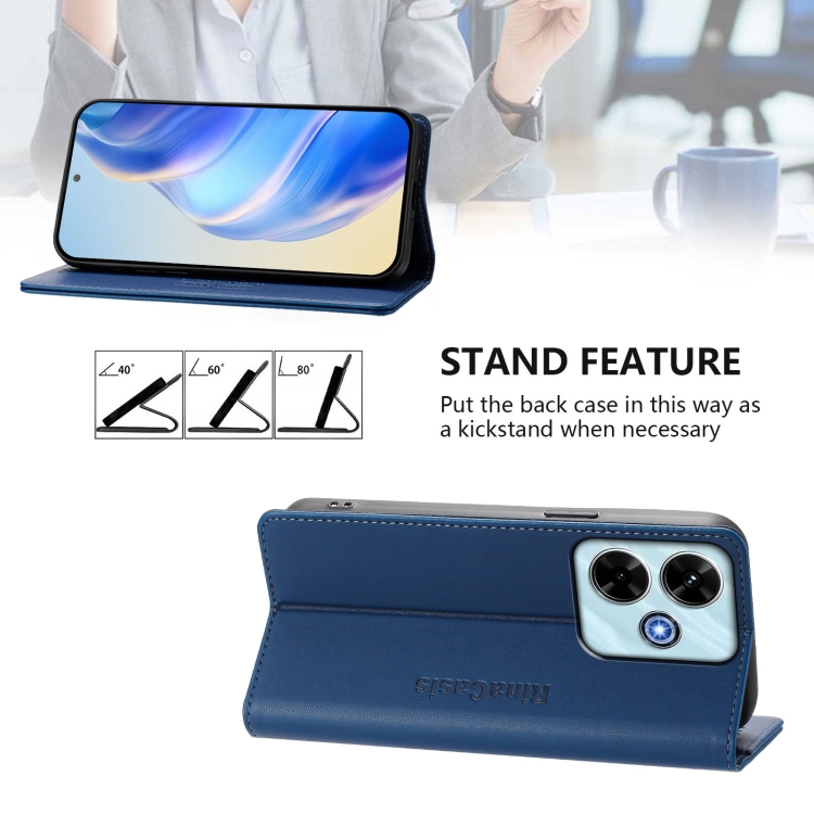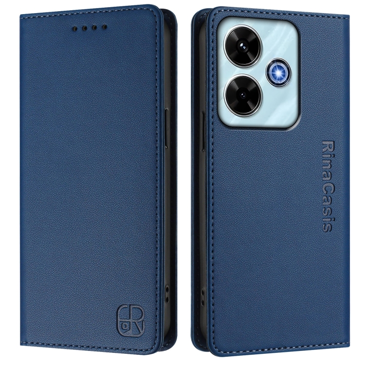 Funda de Cuero con Doble Pliegue y Succión Magnética para Redmi 13 5G/4G Global Rc01 (Azul Oscuro)