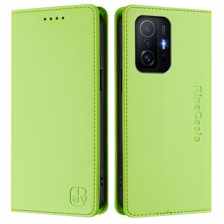 Funda de Cuero con Doble Pliegue y Succión Magnética para Teléfono Xiaomi 11T/11T Pro Rc01 (Verde Hierba)