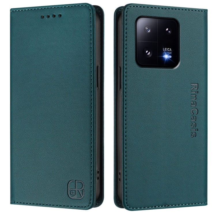 Funda de Cuero con Doble Pliegue y Succión Magnética para Teléfono Xiaomi 13 Pro 5G Rc01 (Verde Oscuro)