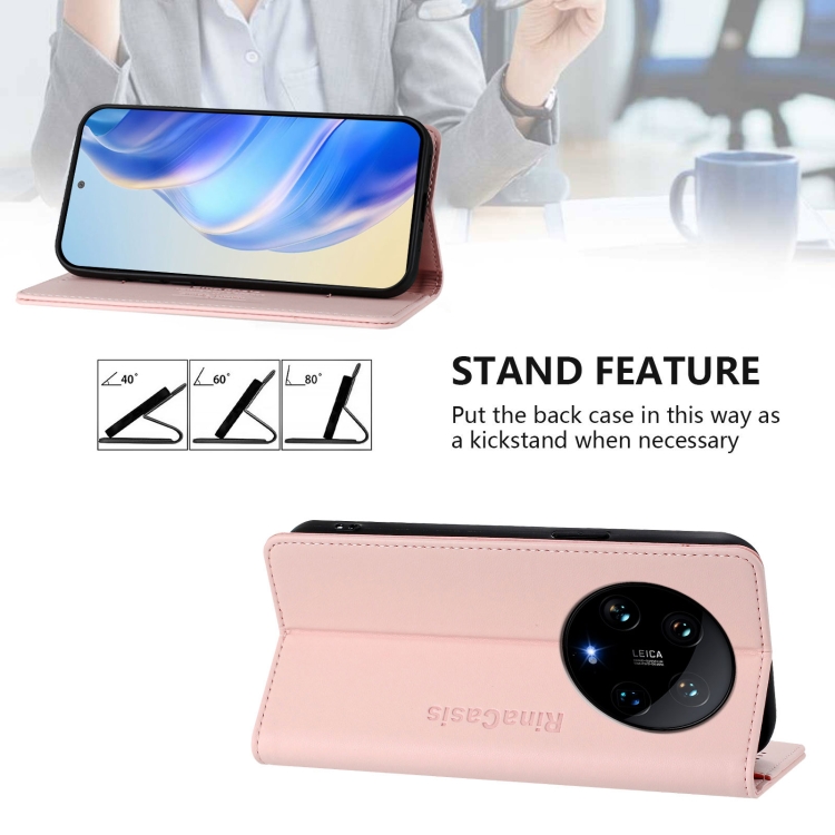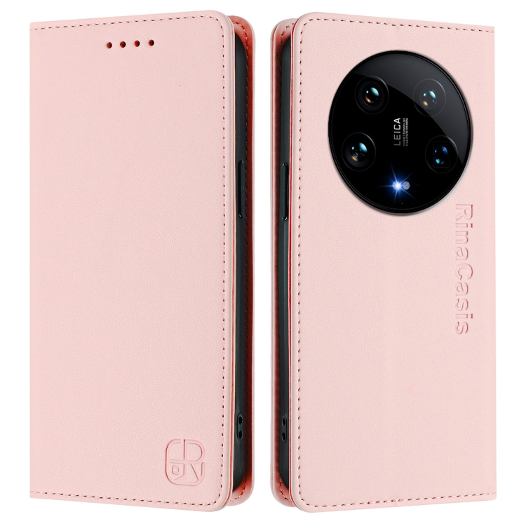 Funda De Cuero Con Doble Pliegue Y Succión Magnética Para Teléfono Xiaomi 14 Ultra 5G Rc01 (Rosa)