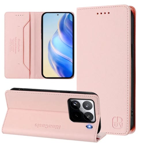 Funda De Cuero Con Doble Pliegue Y Succión Magnética Para Teléfono Xiaomi 15 Pro Rc01 (Rosa)