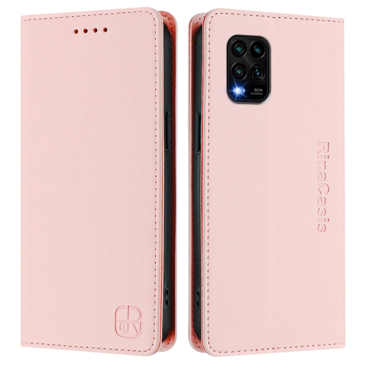 Funda de Cuero con Doble Pliegue y Succión Magnética para Teléfono Xiaomi Mi 10 Lite Rc01 (Rosa)