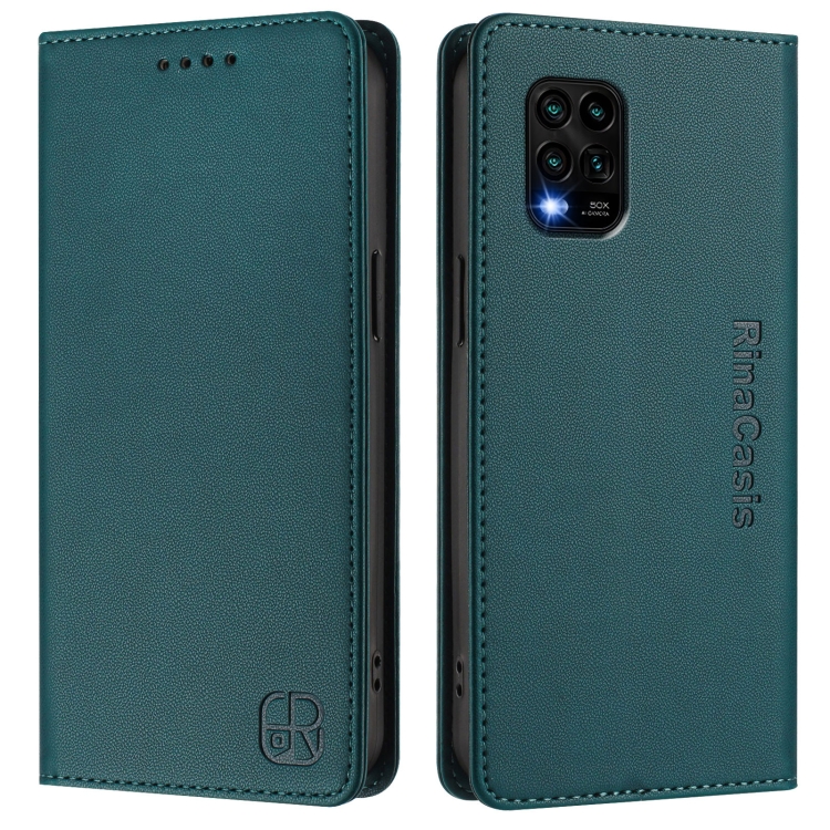 Funda de Cuero con Doble Pliegue y Succión Magnética para Teléfono Xiaomi Mi 10 Lite Rc01 (Verde Oscuro)