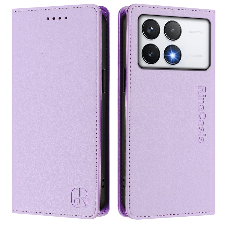 Funda de Cuero con Doble Pliegue y Succión Magnética para Teléfono Xiaomi Poco F6 Pro 5G Rc01 (Morado Claro)