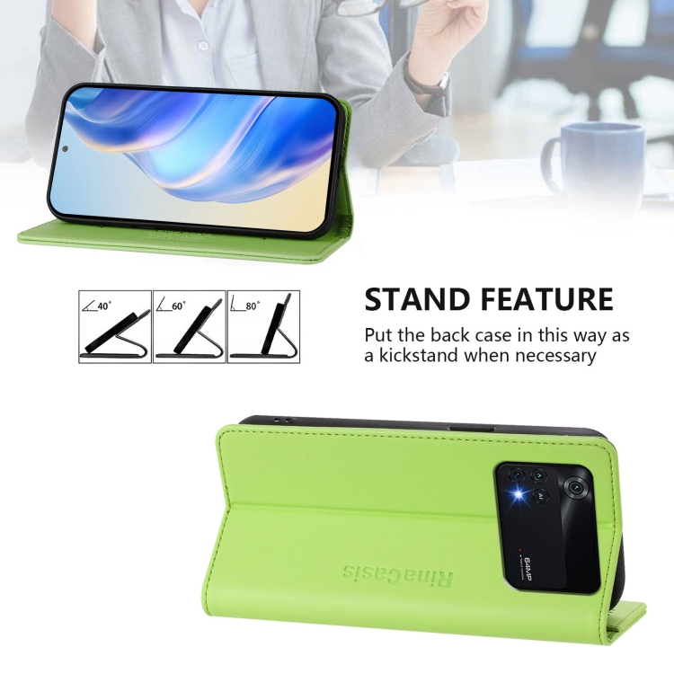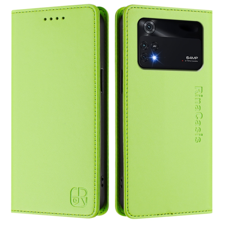 Funda de Cuero con Doble Pliegue y Succión Magnética para Teléfono Xiaomi Poco M4 Pro 4G Rc01 (Verde Hierba)