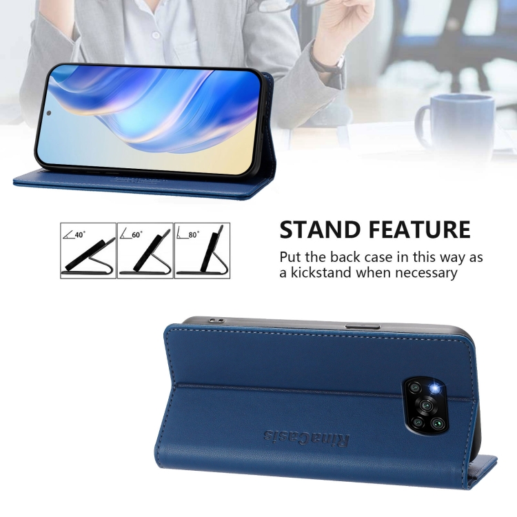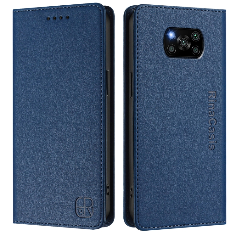 Funda de Cuero con Doble Pliegue y Succión Magnética para Teléfono Xiaomi Poco X3 / X3 Nfc / X3 Pro Rc01 (Azul Oscuro)