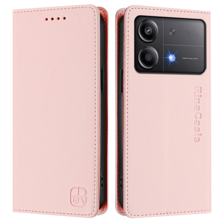 Funda de Cuero con Doble Pliegue y Succión Magnética para Teléfono Xiaomi Poco X6 Neo 5G Rc01 (Rosa)