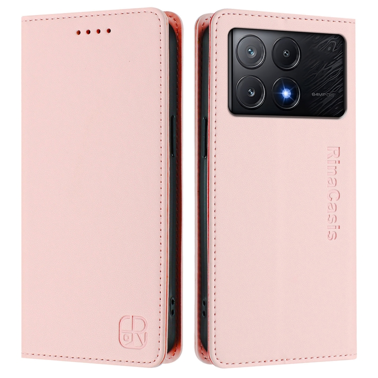 Funda de Cuero con Doble Pliegue y Succión Magnética para Teléfono Xiaomi Poco X6 Pro/Redmi K70E Rc01 (Rosa)