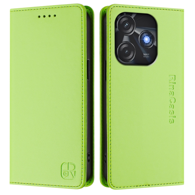 Funda de Cuero Rfid para Tecno Spark 10C / 10 4G Rc01 con Doble Pliegue y Succión Magnética (Verde Hierba)