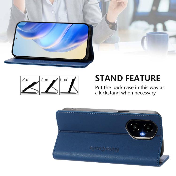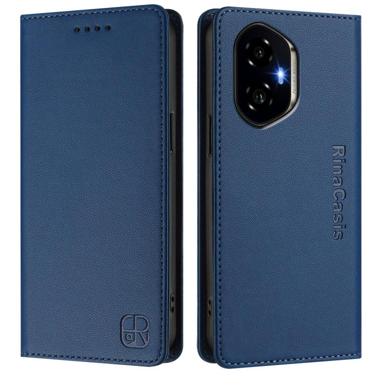 Funda de Cuero RFID con Doble Pliegue y Succión Magnética para Honor 300 Rc01 (Azul Oscuro)