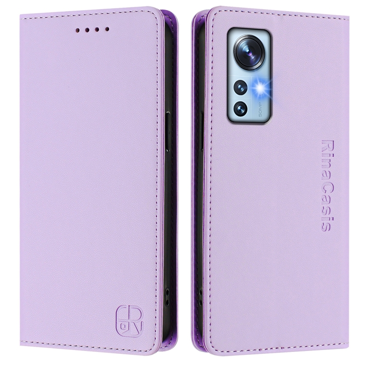 Funda de Cuero con Doble Pliegue y Succión Magnética Rfid para Xiaomi 12 5G / 12X 5G / 12S 5G Rc01 (Morado Claro)