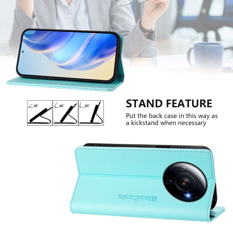 Funda de Cuero con Doble Pliegue y Succión Magnética Rfid para Xiaomi 12S Ultra Rc01 (Verde Menta)