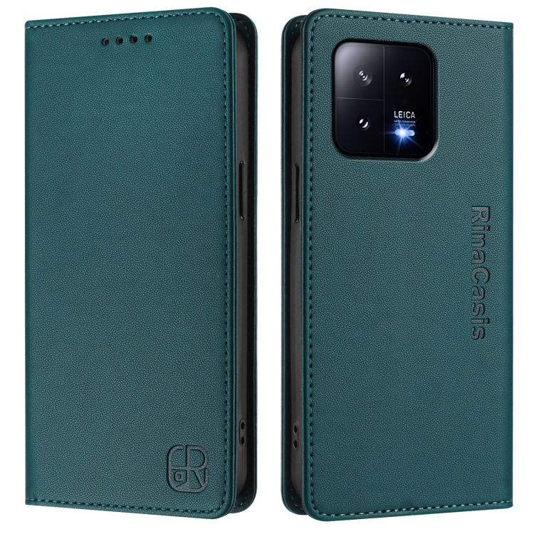 Funda de Cuero con Doble Pliegue y Succión Magnética Rfid para Xiaomi 13 5G Rc01 (Verde Oscuro)