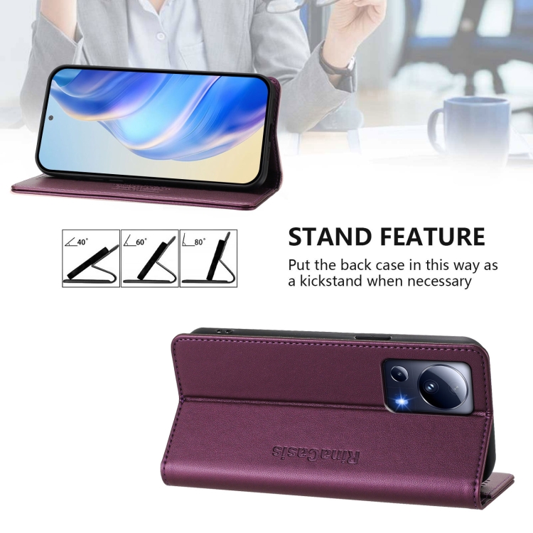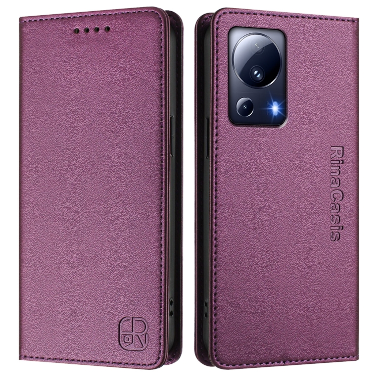 Funda de Cuero con Doble Pliegue y Succión Magnética Rfid para Xiaomi 13 Lite 5G/Civi 2 Rc01 (Violeta)