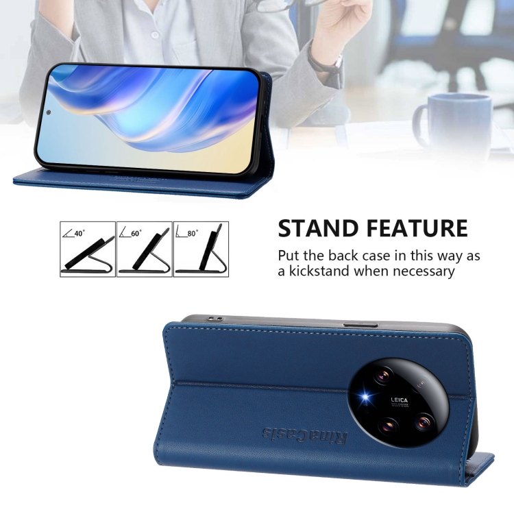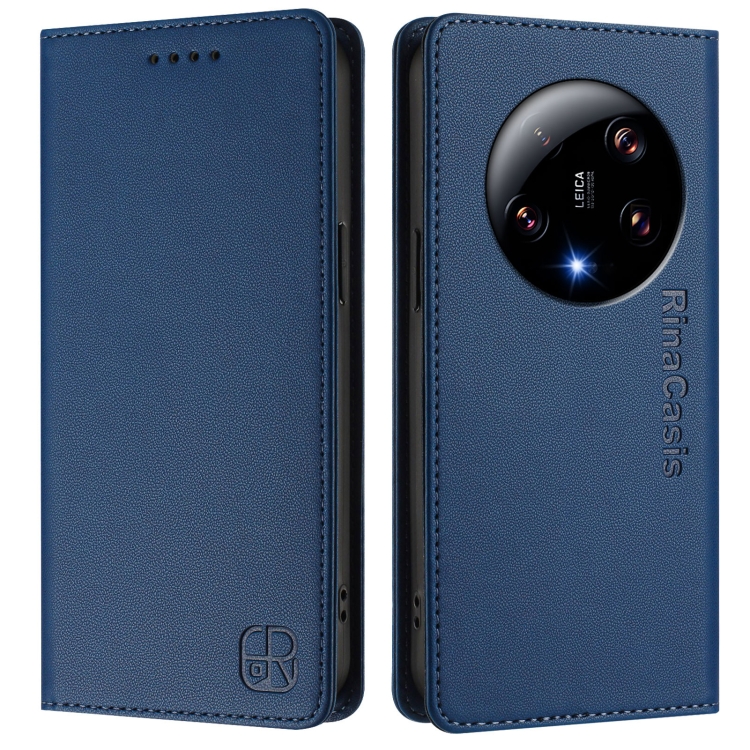 Funda de Cuero con Doble Pliegue y Succión Magnética Rfid para Xiaomi 13 Ultra Rc01 (Azul Oscuro)