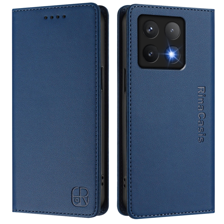 Funda De Cuero Con Doble Pliegue Y Succión Magnética Rfid Para Xiaomi 14T Pro Rc01 (Azul Oscuro)