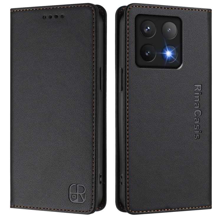 Funda De Cuero Con Doble Pliegue Y Succión Magnética Rfid Para Xiaomi 14T Pro Rc01 (Negra)