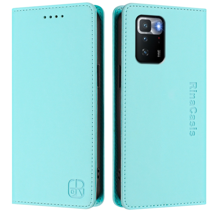 Funda de Cuero con Doble Pliegue y Succión Magnética Rfid para Xiaomi Poco X3 Gt Rc01 (Verde Menta)