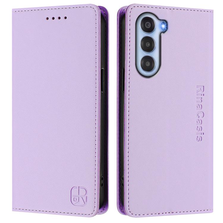 Funda de Cuero con Doble Pliegue y Succión Magnética Rfid para ZTE Nubia S 5G A403Zt Rc01 (Morado Claro)