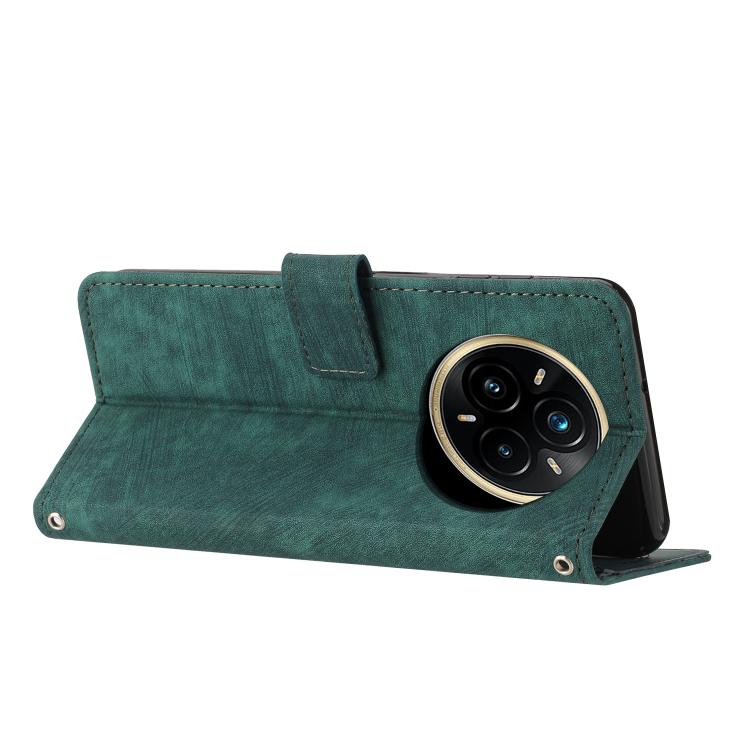 Funda de Cuero con Estampado de Rayas y Cordón para Realme 14 Pro (Verde)