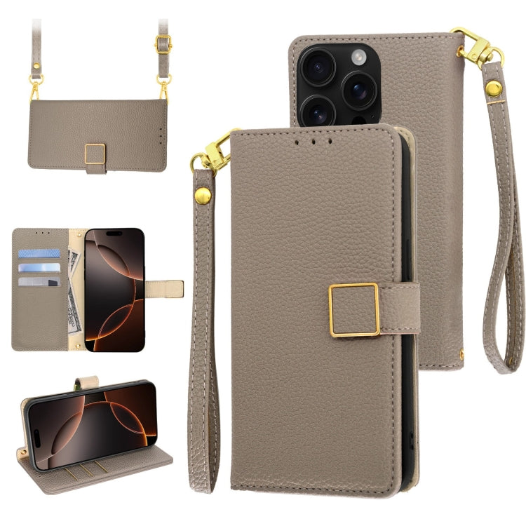 Funda de Cuero con Hebilla Cuadrada y Textura de Lichi para iPhone 16 Pro Max (Marrón)