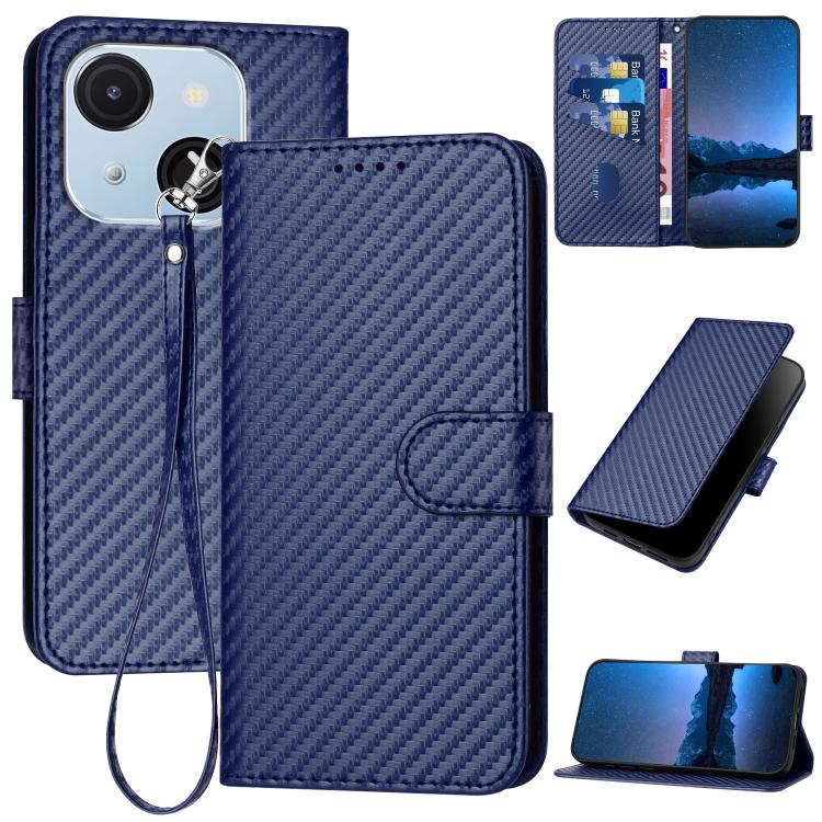 Funda de Cuero con Hebilla de Fibra de Carbono para Teléfono Itel A50C Yx0070 con Cordón (Azul)