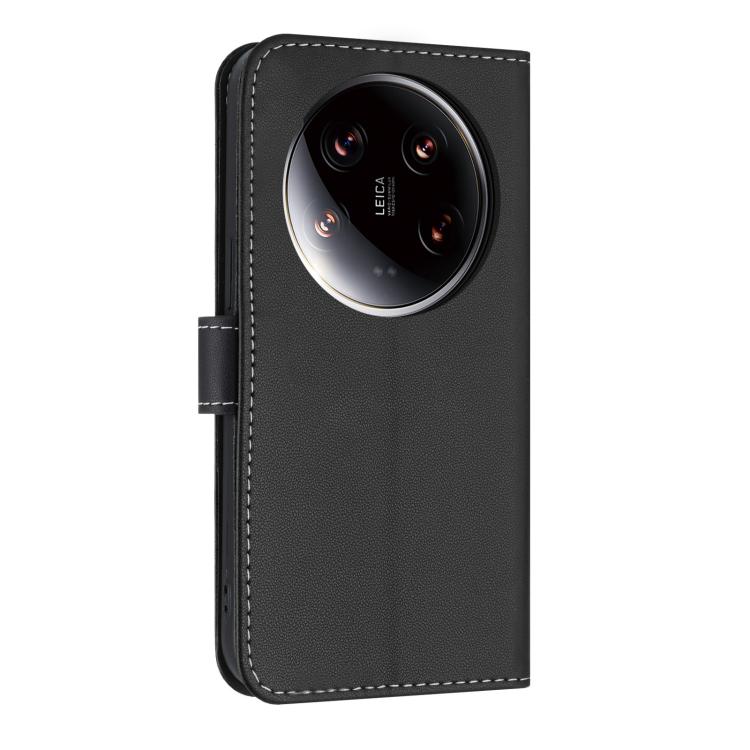Funda de cuero con lazo metálico y correa de mano para Xiaomi 14 Ultra (negra)