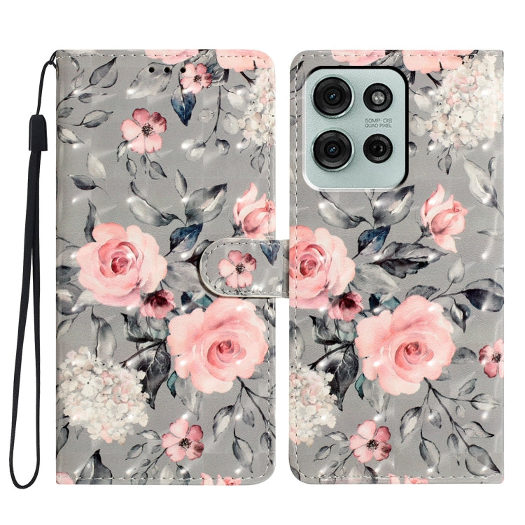 Funda de Cuero con Patrón 3D para Motorola Moto G75 5G (Flor de Base Gris)