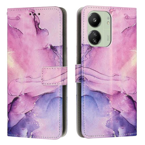 Funda de Cuero con Patrón de Mármol Pintado para Redmi 13C 4G (Morado)