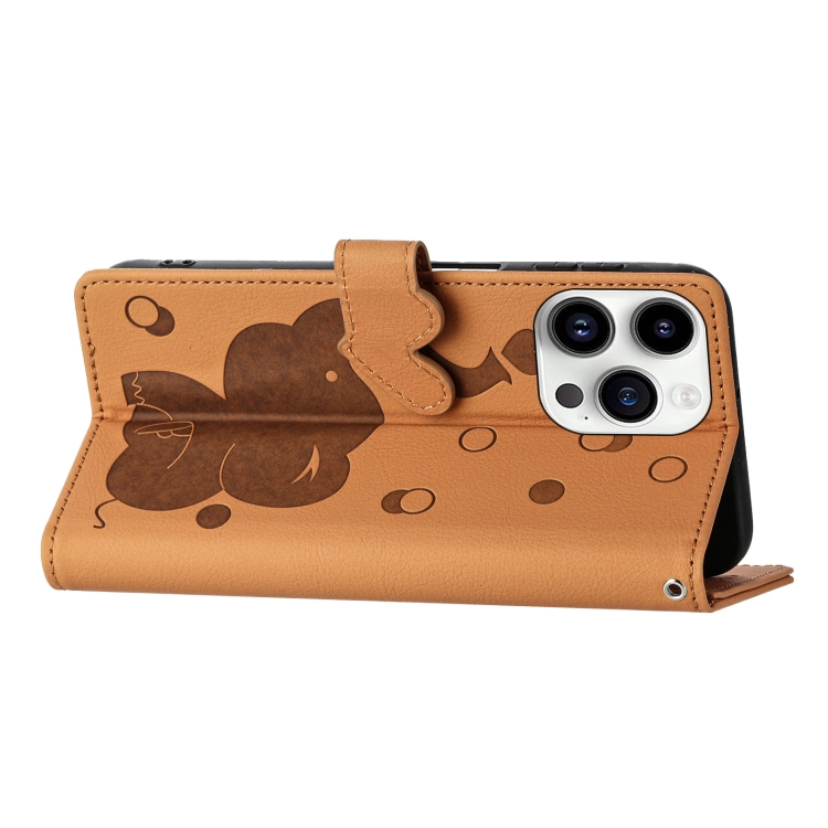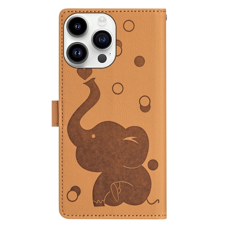Funda de Cuero iPhone 16 Pro Max Relieve Elefante Dibujos Animados (Amarillo)