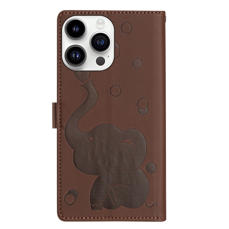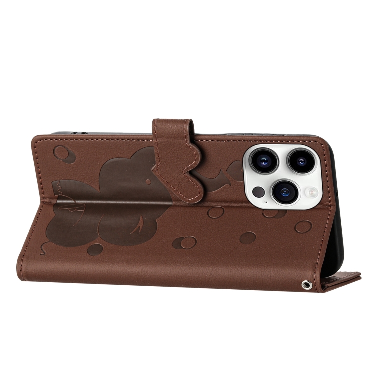 Funda de Cuero iPhone 16 Pro Max Relieve Elefante Dibujos Animados (Marrón)