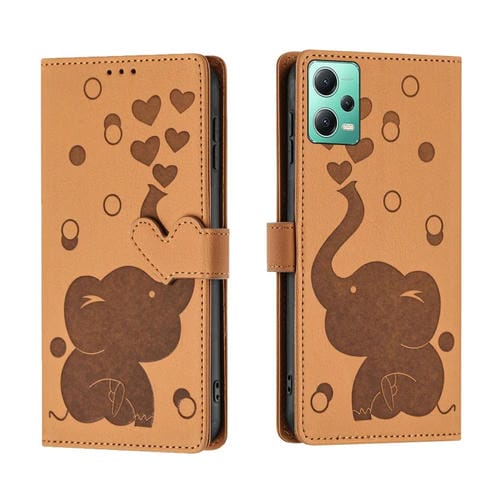 Funda de Cuero con Relieve de Elefante de Dibujos Animados para Redmi Note 12 5G (Amarillo)