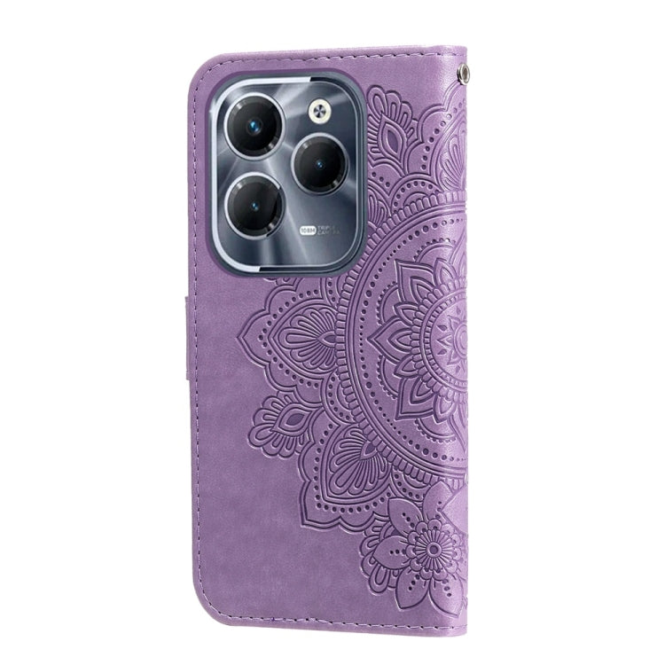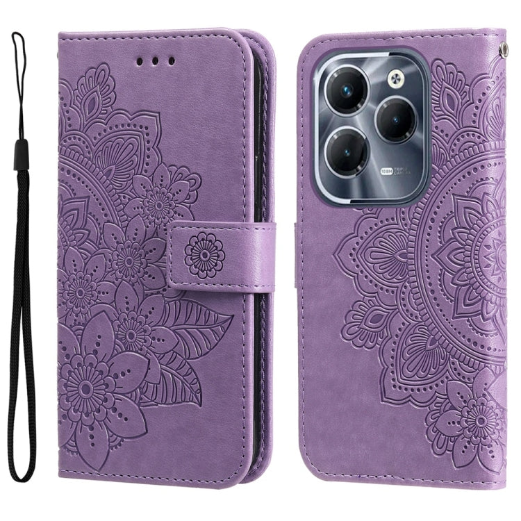 Funda de Cuero con Relieve Flores Siete Pétalos para Infinix Hot 40 y Hot 40 Pro (Morado Claro)