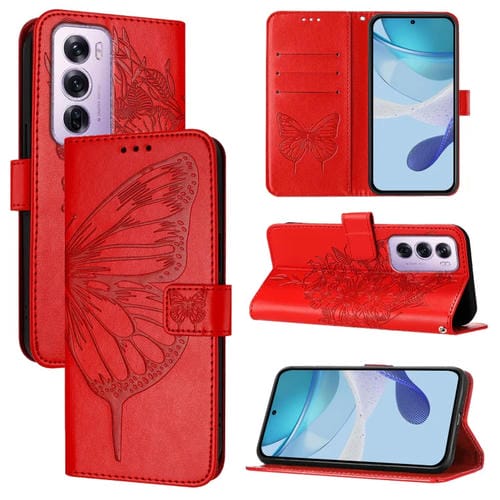 Funda de Cuero con Relieve de Mariposa para Teléfono Oppo Reno12 Pro 5G (Rojo)