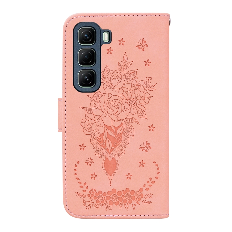 Funda de Cuero con Relieve Mariposa y Rosa para Infinix Hot 50 5G (Rosa)
