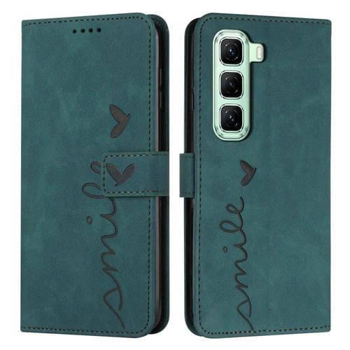 Funda de Cuero con Relieve Corazón para Infinix Hot 50 5G (Verde)
