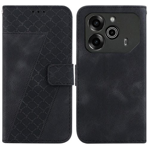 Funda de Cuero con Relieve en Forma de Siete para Tecno Pova 6 5G y 6 Pro 5G (Negra)