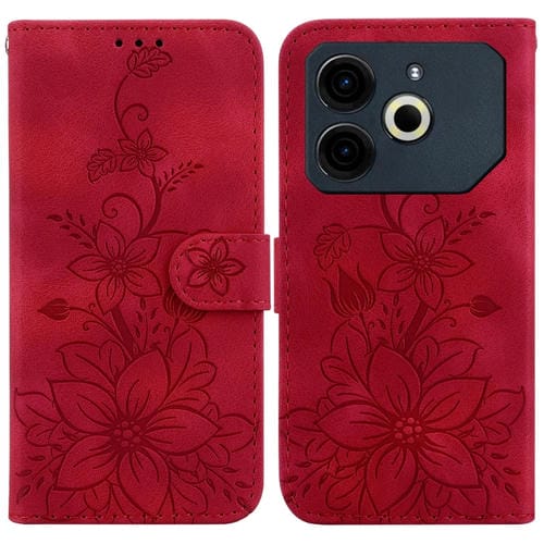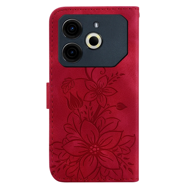 Funda de Cuero con Relieve Lily para Teléfono Tecno Pova 6 Neo (Rojo)
