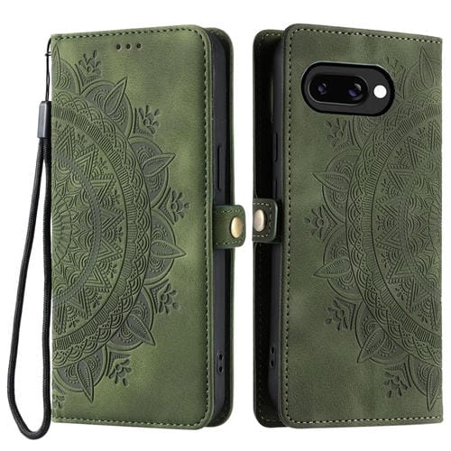 Funda de Cuero con Relieve Totem para Google Pixel 9A Skin Feel (Verde Oscuro)