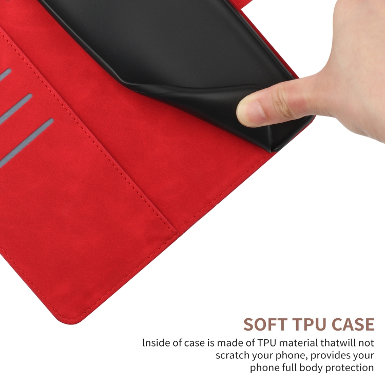 Funda de Cuero con Relieve y Costuras para Oppo A3 4G Global/5G Global (Rojo)