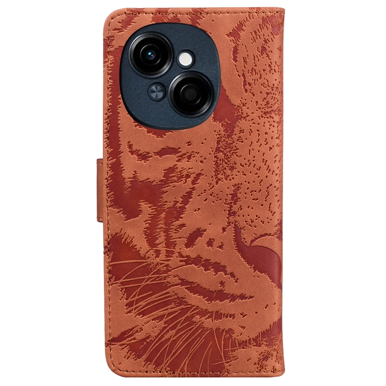 Funda de Cuero con Tapa Estampado de Tigre para Tecno Spark Go 1/Pop 9 Pro (Marrón)